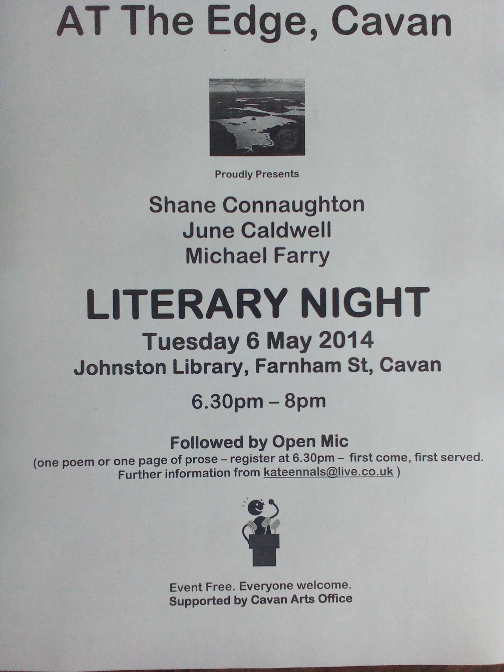 One thought on “AT the Edge, Cavan. Literary Night followed by Open Mic. Tues 6 May. 6.30pm. Johnston Library.”