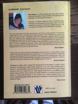 When I got back to Cavan, the excitement continued when I opened the post and found my new book, Elsewhere, waiting for me from Vole Publishing. Rebecca O’Connor (editor of that beautiful literary journal, The Moth) is launching it in Cavan at a real live event on Friday 20th November with actual cake and wine in Cavan Town Hall. I’m having a zoom launch the following Friday on 26 November at 6pm. I love the quotes on the back…perfect poetry, me thinks.