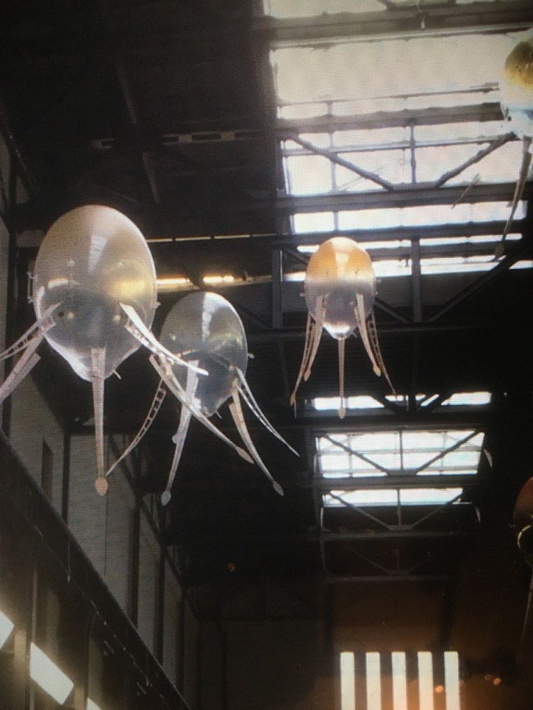 On walking in to the Tate through the Turbine Hall we saw the most magnificent flying jellyfish bobbing about (https://www.tate.org.uk/whats-on/tate-modern/exhibition/hyundai-commission-anicka-yi.) What wonderful creatures. These were a highlight of my London visit. After browsing around the permanent exhibition (we couldn’t get into any of the featured exhibitions because they were booked out), we sat down in a very comfortable leather couch and Mal sketched them while I wrote a poem. I love to sit in a gallery and take the time to respond to what I see. During my London visit I went to the Victoria and Albert, and the Photographer’s Gallery in Oxford St where I saw a fascinating series of photos by Helen Levitt of New York street children and people in the 40s, but I didn’t get time to sit and respond in either gallery.