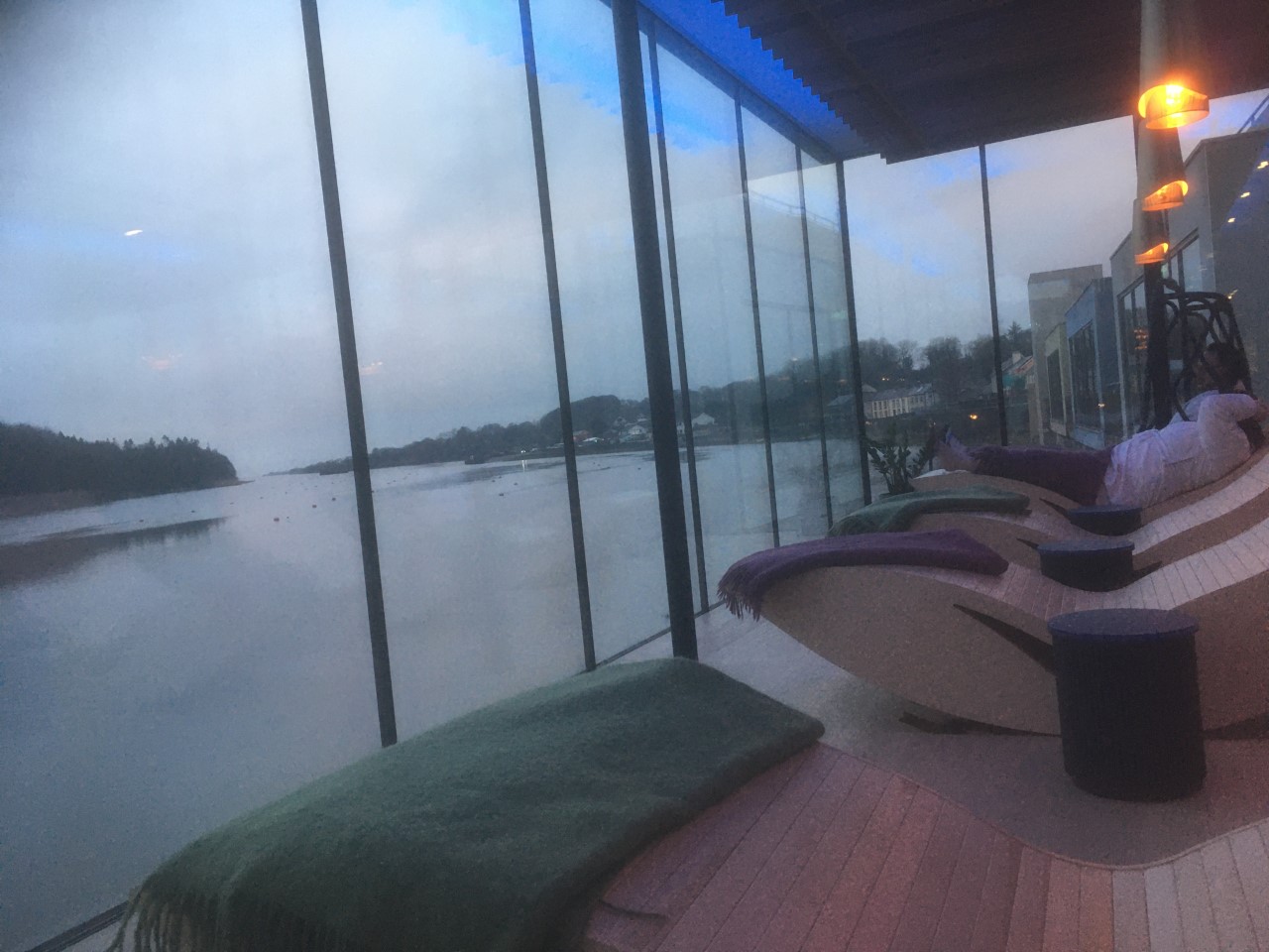 Talking of evolution, I have just come back from a two night stay in Ballina at the Ice House. The fourth wall of our hotel room was a glass window overlooking the River Moy and Belleek woods. The wide, tumbling, salmon tossed, river winter life was full of fowl, birds, fish, otters, and weather. There was so much movement in tune with hours of the day. The wind, sea tides, night and day made the river rise, fall, burble, crash, there were different rhythms at different hours. At dusk, there was a starling murmuration, ducks squawking, and the family of three swans dipped their heads and settled them under their wings. At dawn, the river woke slowly, with a pale demeanour. Singly, birds abounded in the air, fish began to pop bubbles in the water, and the river rippled over the rapids.