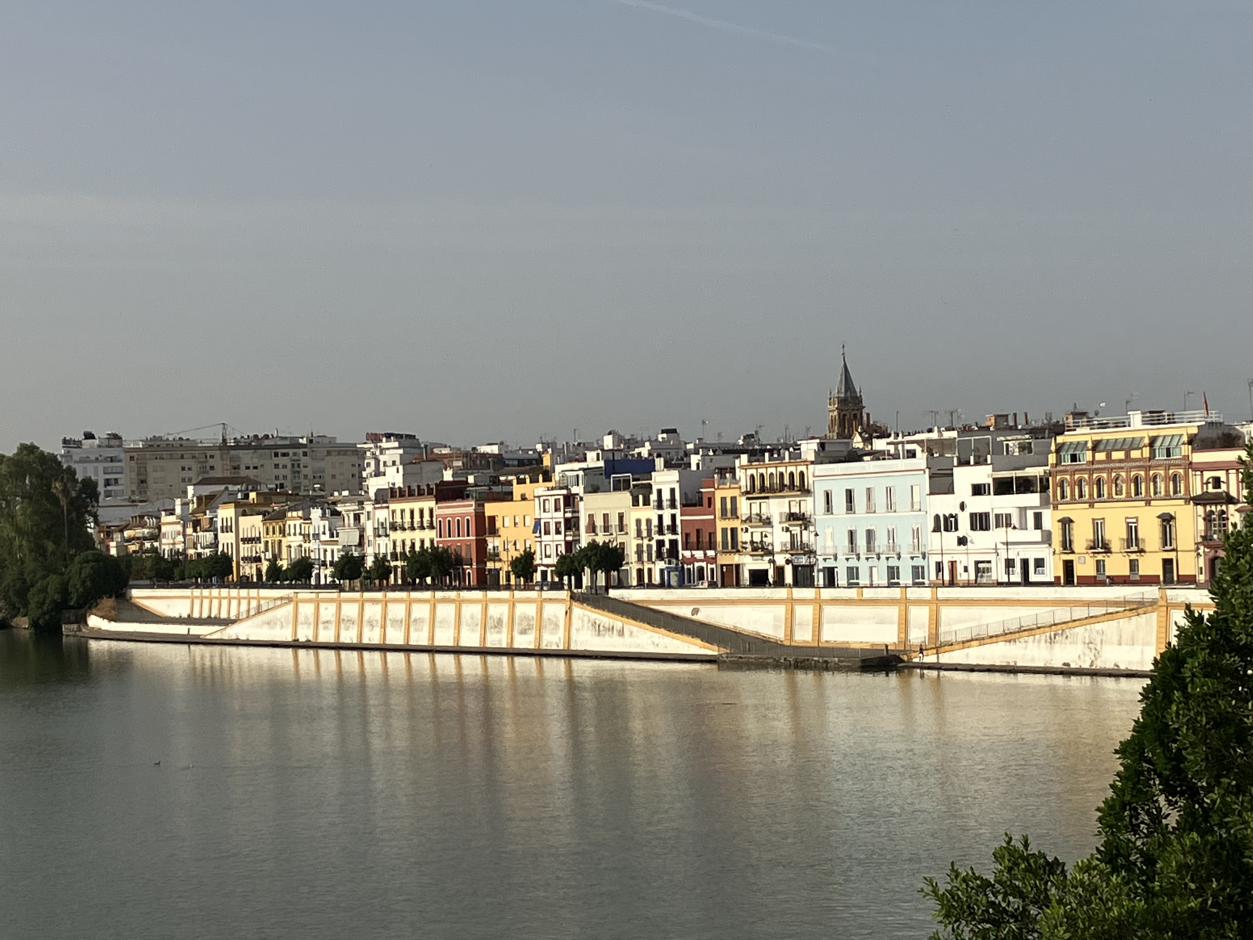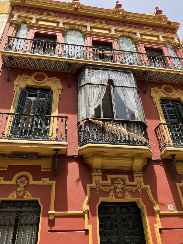 On the fourth day, having promenaded enough in Olhao, we hired a car and skedaddled to Seville in Spain, 150 miles up the motorway. What a gorgeous city it is. It was vaguely on my bucket list and is now one of my planned features for a city break next year. It is certainly one of the most beautiful cities I have ever been in. I loved the narrow streets, the small squares, the river and canal. The Real Alcazar, a Spanish palace of Moor and Christian architecture was spell bounding. The tiles, the intricacies of the plastering, the colours, the symmetry, the gardens were astounding, it was a truly magical place. The Casa de Pilates was similar, though it didn’t have the amazing gardens. However, the acoustics in its music room was gorgeous. The Plaza d’Espagna also took my breath away. Sadly, the actual plaza building which was built in the 1920 in a mix of baroque, Moor and romanticism styles, was being set up for a big event, so the view was somewhat ruined, and, anyway, we were running out of leg muscle power (I think we walked over 20kms in scorching heat in Seville) and time. We wanted to sit down, and eat Paella still before leaving Spain and heading back to to return the hire car and the delights of watermelon sangria.
