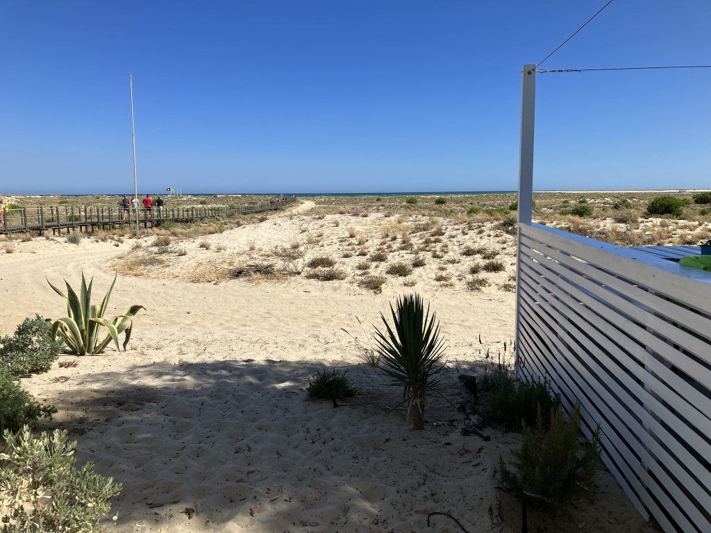 We discovered the joy of watermelon sangria on the third night of our holiday. We were celebrating being on holiday, as one does, but spending the evening in a café rather than going back to the Casa we had rented because of the alarming creature we had encountered the previous night on our roof terrace. I will explain. On our first day, Joe and I had spent the morning walking around the coastal Rio Formosa national park, through the salt and fresh water marshes, inhaling the pines, admiring the white, red and purple of the oleander trees, blue skies, and, on the way there, the orange and white sign of the Intermarche shopping store. So, that afternoon we had returned and splashed out in Intermarche, buying foods of interest for a picnic on our terrace. At 9.30pm, we had returned from our aperitif, laid the terrace table with tomato salad, flageolets, anchovies, cheese, gherkins, bread, curried hot dogs (joe’s choice), cornbeef, pates, green glace cherries and flan and were just digging in, when a very blonde, angry, slim, half naked small man appeared on his side of the terrace wall. He proceeded to speak very fast, accented English about noise, where he slept, the bang of doors, feet on the stairs, and the fucking motherfuckerness of the owner. All this time he was wildly gesticulating and being very aggressive. Sadly, as a result, we spent much of our time outside the Casa in cafes…which explains the two jugs of sangria, and the possible symptoms of ‘surfers eye’. Anyhow, whatever the reason, the eyes got better, and we got more familiar with the cafes on the prom.