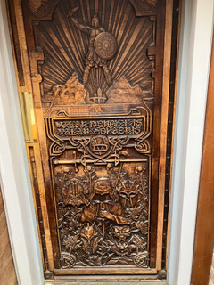 After a little walk in Cottage Wood, we decided to explore the area, driving across the cliff roads on the different peninsulas. First, we went to Cushendun, just up the road. It’s a tiny place with the strangest architecture, much of which was designed by the Welsh architect Clough Williams Ellis who designed Port Merion in Wales, home to the film set of The Prisoner. He was employed by Lord Cushendun and the houses with their Mansard roofs were designed to look like fishing cottages from Cornwall which was where Lord Cushendun’s wife was from. Anyway, what really made this village famous were the caves which were used by The Games of Thrones series in their filming. Would you believe, we forgot to visit them as we got distracted by me having a dip in the coldest but clearest sea water I have ever seen, followed by a pint of bitter shandy in the infamous Mary McBride’s pub. It is full of nooks and crannies and has the GoT oak carved doors.