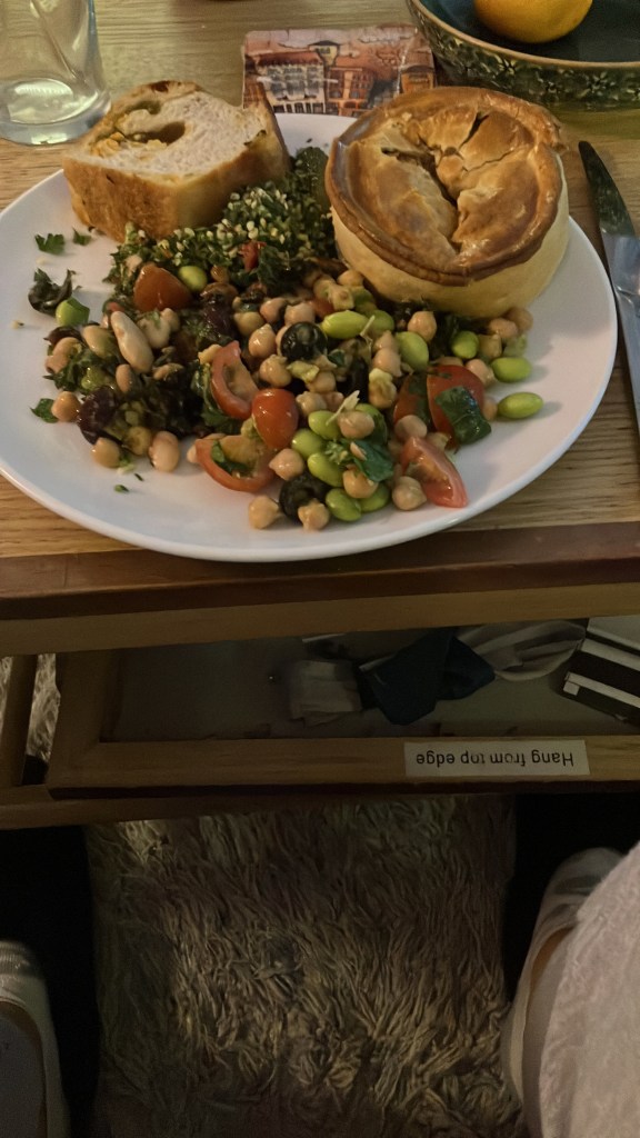 On Saturday, we bought delicious pies and interesting salads in the Milk Market and ate them for supper! Next time I am going to get the Shepherds Pie pie which is Shepherds Pie in a Pie. Can you imagine?